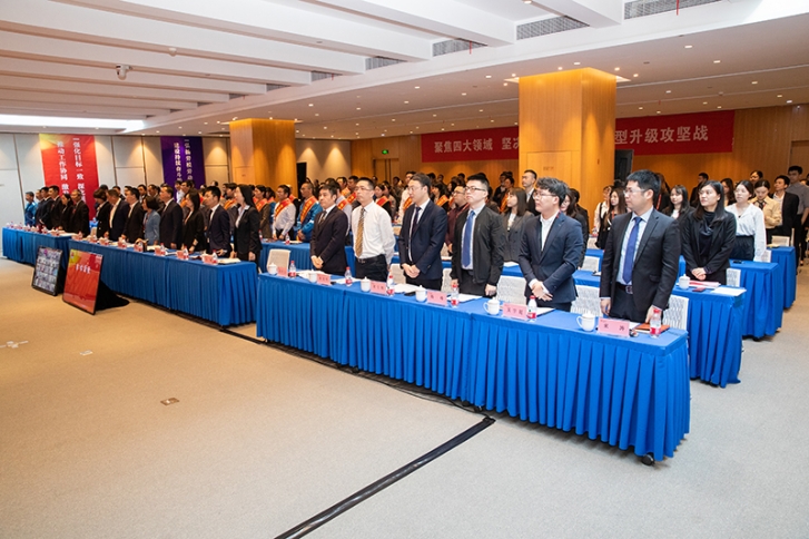 大會在雄壯的國歌聲中拉開序幕,并進(jìn)行先進(jìn)典型表彰