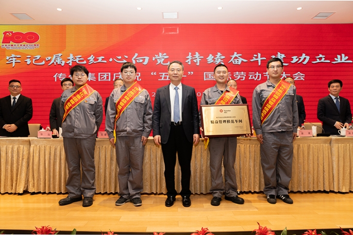 傳化化學(xué)集團(tuán)橋南三車間榮獲“精益管理模范車間”稱號,徐冠巨董事長頒獎授牌